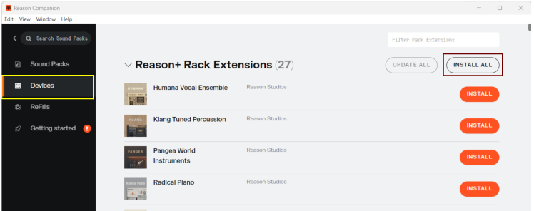Open the Reason Companion app and click the Devices tab.