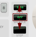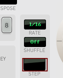 The Step display shows the current step in the pattern and is active only when you are recording using Step Recording, see “Step recording”.