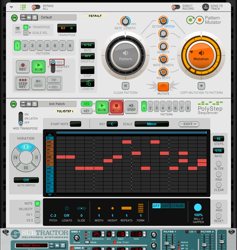 This mutation makes pairs of notes change places in the pattern. Higher values will swap more steps.