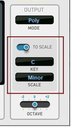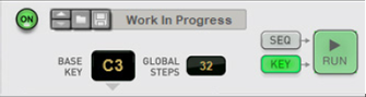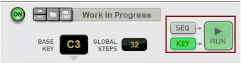 If you want to play the Quad Note Generator device from a MIDI keyboard/On-screen Piano Keyboard, using the “Key” Play mode (see “Play mode”), you don’t have to manually select any Base Key (since this is determined from the notes you play on your MIDI Keyboard).