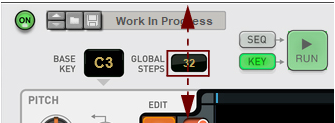 Set the offset (interval) relative to the Base Key (see “Base Key”) by dragging up/down in the Offset display.