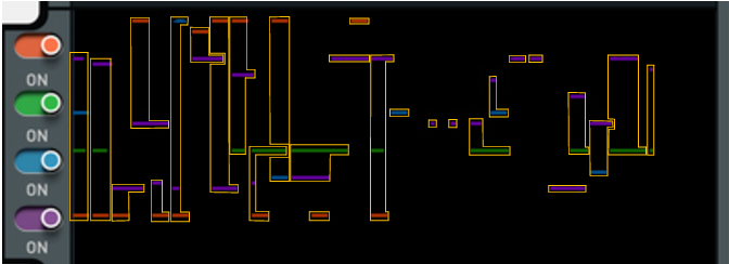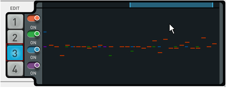 Route CV signals here to control the Pattern parameter (see “Pattern”) of Note Lines 1 to 4 respectively. Attenuate the input signal with the knob, if desired.