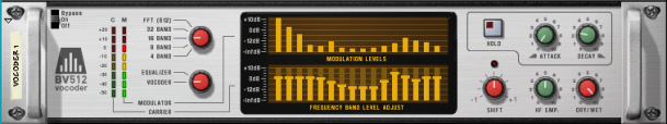 Here are some guidelines for creating a typical vocoder setup. We assume here that you have a MIDI keyboard connected. For details on the parameters, see “BV512 parameters”.