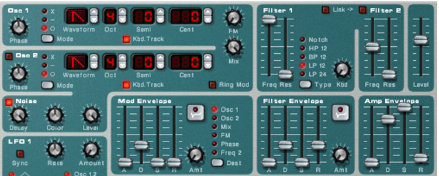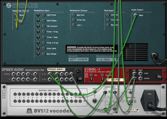 It’s important to have high frequencies (a lot of harmonics) in the carrier. On the Subtractor, a simple but effective carrier sound would be based on a sawtooth wave, with the filter fairly open. For more about choosing carrier sounds, see “Choosing a carrier sound”.