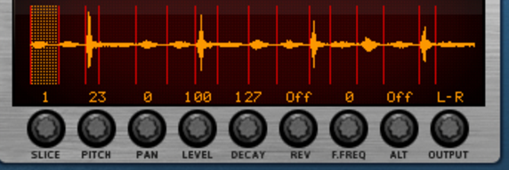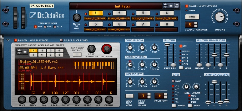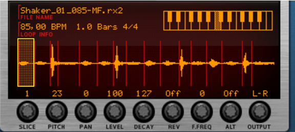Refer to “Adding Loops” for info on how to load REX files and to “Editing Slices in the Waveform Display” for info about editing the REX loop.