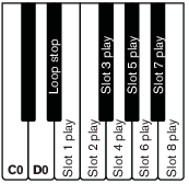 Note that selecting a Loop Slot only selects the corresponding REX loop for playback using the Run function (see “Enable Loop Playback and Run”) or Play from the main sequencer. Which Loop Slot the master keyboard or sequencer notes control is defined with the Note To Slot button, see “Note To Slot”.