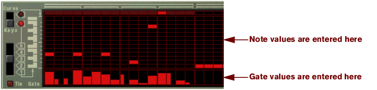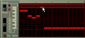 If “Tie” (see “Using Tied Notes”) now is activated for a step, the note will be tied to the next and the pitch will continuously “glide” to the pitch of the following step.