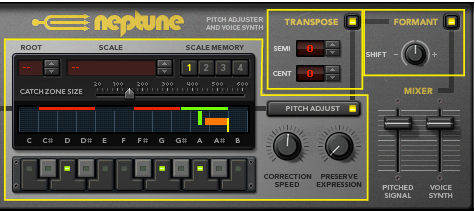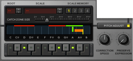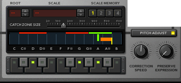 As soon as any MIDI note is received by Neptune, the Root Key, Scale and Catch Zone settings will be temporarily ignored. However, the Correction Speed (see “Setting Correction Speed”) and Preserve Expression parameters (see “About the Preserve Expression parameter”) will still be active.