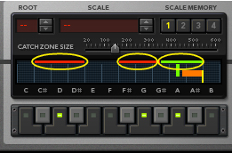 With the Catch Zone Size slider you set the range of the input pitches to be corrected to specific notes. Refer to “Setting Catch Zone Size” for details on how to use this function.