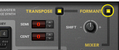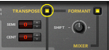 This slider controls the total output volume of the Pitch Adjust, Transpose and Formant sections routed to the Left and Right outputs (see “Audio Out”).