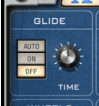 Glide (portamento) makes note pitches glide from previous notes to new ones, at the time set with the Time knob. Glide can be used in all Key Modes (see “Key Mode”).