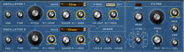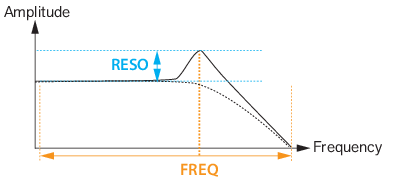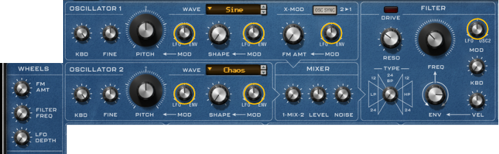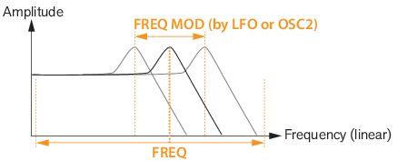 With the FILTER FREQ knob you control how much the Mod Wheel should affect the “Freq” parameter of the Filter.