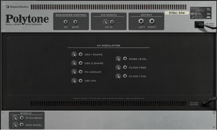 Mixing the layers opens up for really nice and fat sounds, whereas morphing between the layers can generate really complex evolving sounds. The mixing/morphing can be controlled from the Mod Wheel, Keyboard Velocity, Global LFO, or from a fader on the front panel. The mix/morph balance can also be controlled from the “Mix/Morph” CV input on the rear panel.