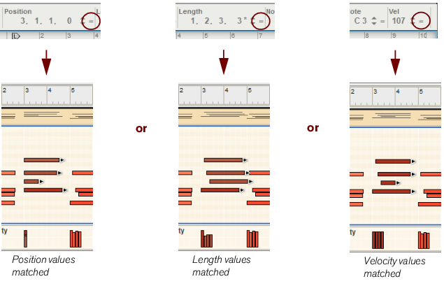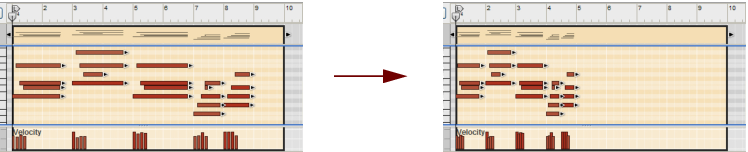 You can also edit velocity values numerically in the Inspector. See “Note and automation editing in the Inspector”.