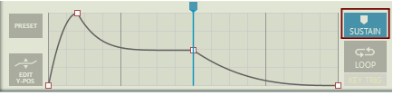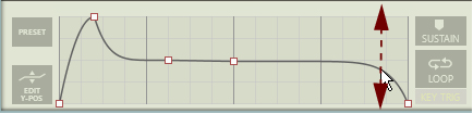In Envelope 1 mode, the sample is played back between the Sample Start marker and the Sample End marker according to the Envelope 1 curve (see “The Envelopes section”). The Sample Start position is represented by the minimum Y value and the Sample End position is represented by the maximum Y value in the Envelope display.