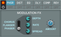 The Effects section features six different effect modules that can be freely reordered by dragging & dropping. Most of the effect parameters are also available as destinations in the Modulation Bus, see “The Modulation Bus section”.