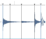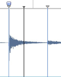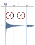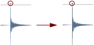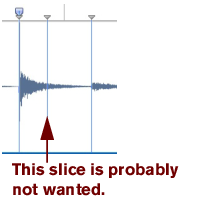 Zoom in far enough for the display to clearly show how the cursor jumps between zero crossings. Try to find the first position before the beginning of the sound. This applies both when adding and moving slices.
