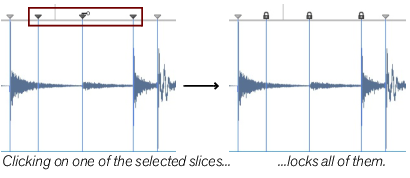 Slice markers need to be selected for some operations, like Silence Selected (see “Silence Selected” and “Using Silence Selected”), or when moving and deleting slices (see “Manual Slice Handling” in this chapter):